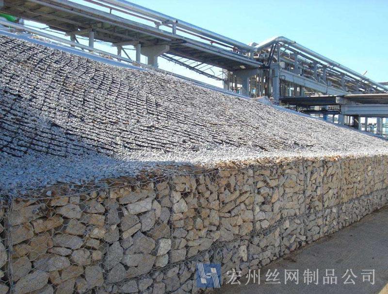 石籠網(wǎng)也稱重型六角網(wǎng)、擰花網(wǎng)、格賓網(wǎng)、三絞節(jié)機(jī)編網(wǎng)、雙絞格網(wǎng)是金屬線材編織的角形網(wǎng)(六角網(wǎng))制成的網(wǎng)箱,使用的金屬線徑是根據(jù)六角形的大小而不同.如果是金屬鍍層的金屬線六角形,則使用線徑為2.0mm到4.0mm的金屬線,如果是PVC包覆的金屬線編織的六角網(wǎng),則使用外徑為3.0mm到4.5mm的PVC(金屬)線.外框邊緣的線則使用比六角網(wǎng)線粗一號(hào)的線。