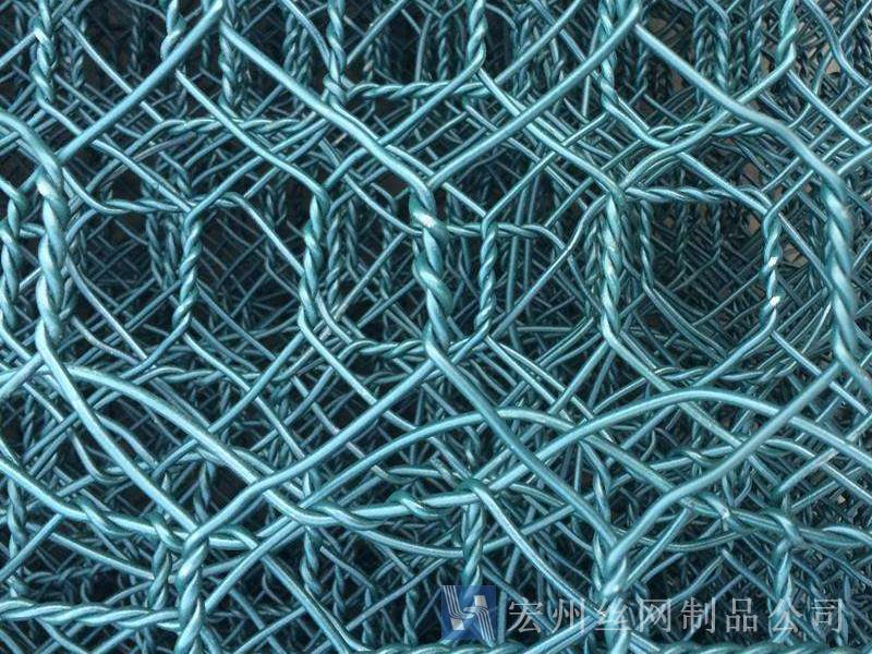 (4)鋅-5%鋁-混合稀土合金鋼絲包塑:在鋅-5%鋁-混合稀土合金鋼絲的表面包一層PVC保護層,再編織成各種規(guī)格的六角網(wǎng)。這層PVC保護層將會大大增加在高污染環(huán)境中的保護,并且通過不同顏色的選擇,使其能和周圍環(huán)境融合。