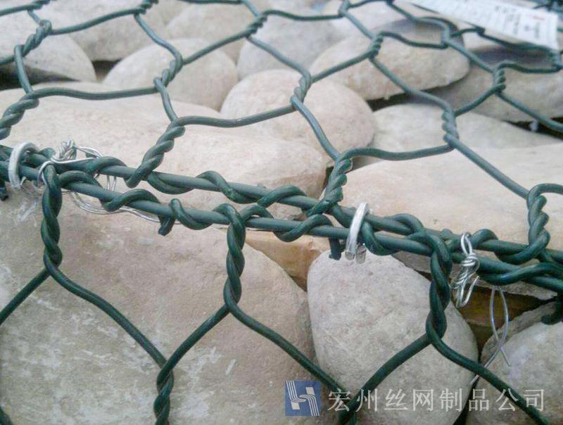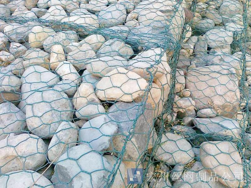 (3)鍍鋅鋼絲包塑:優(yōu)質(zhì)低碳鋼絲,在鋼絲的表面包一層PVC保護層,再編織成各種規(guī)格的六角網(wǎng)。這層PVC保護層將會大大增加在高污染環(huán)境中的保護,并且通過不同顏色的選擇,使其能和周圍環(huán)境融合。
