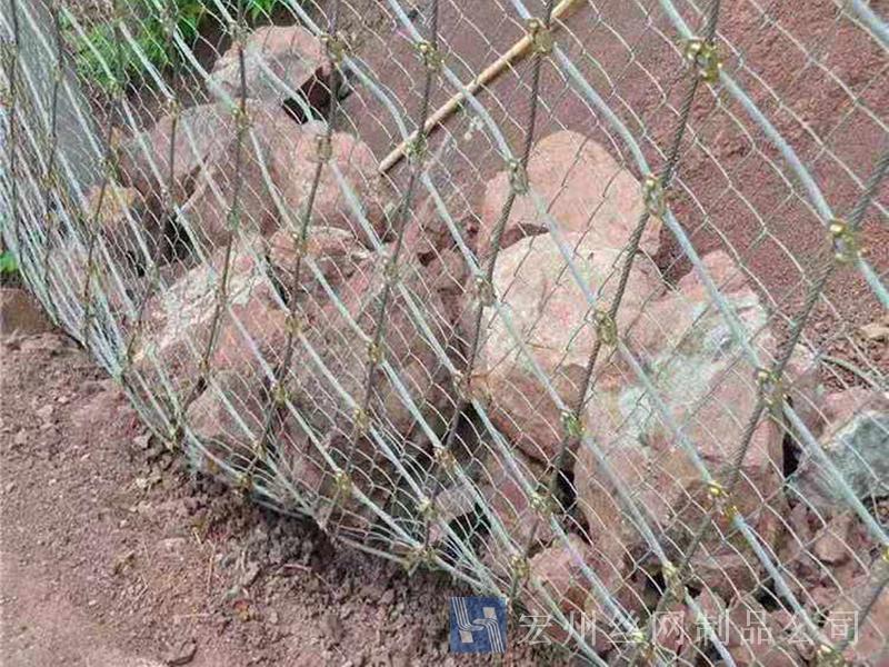 鋼絲繩網(wǎng)是一種開(kāi)放性的保護(hù)系統(tǒng),這種系統(tǒng)在地下水可以自由排泄方面的應(yīng)用最為明顯,最為可觀的一點(diǎn)就是避免了由于地下水壓力的升高而引起的邊坡失穩(wěn)問(wèn)題;該系統(tǒng)除對(duì)穩(wěn)定邊坡有一定貢獻(xiàn)外,同時(shí)還能抑制邊坡遭受進(jìn)一步的風(fēng)化剝蝕,且對(duì)坡面形態(tài)特征無(wú)特殊要求。