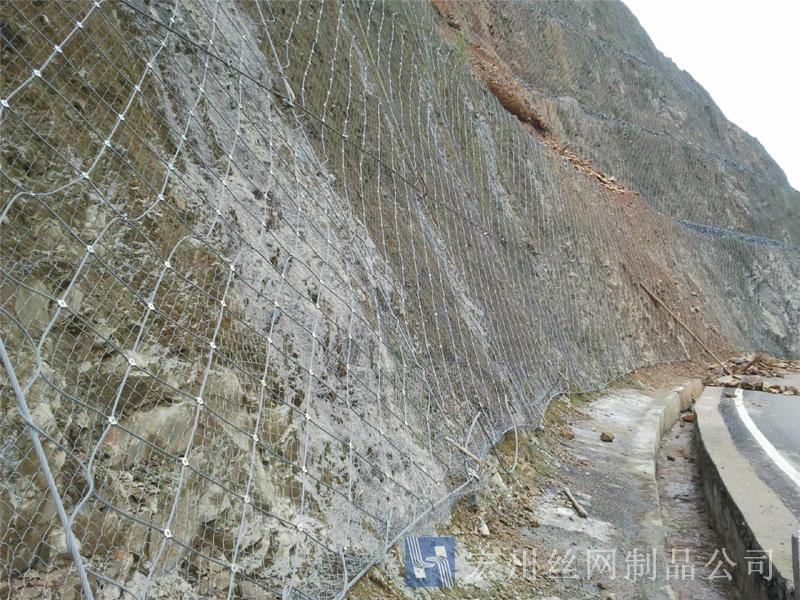 主動(dòng)防護(hù)系統(tǒng)是以鋼絲繩網(wǎng)為主的各類柔性網(wǎng)覆蓋包裹在所需防護(hù)斜坡或巖石上,以限制坡面巖石土體的風(fēng)化剝落或破壞以及為巖崩塌(加固作用),或?qū)⒙涫刂朴谝欢ǚ秶鷥?nèi)運(yùn)動(dòng)(圍護(hù)作用)。是柔性防護(hù)網(wǎng)的一種。